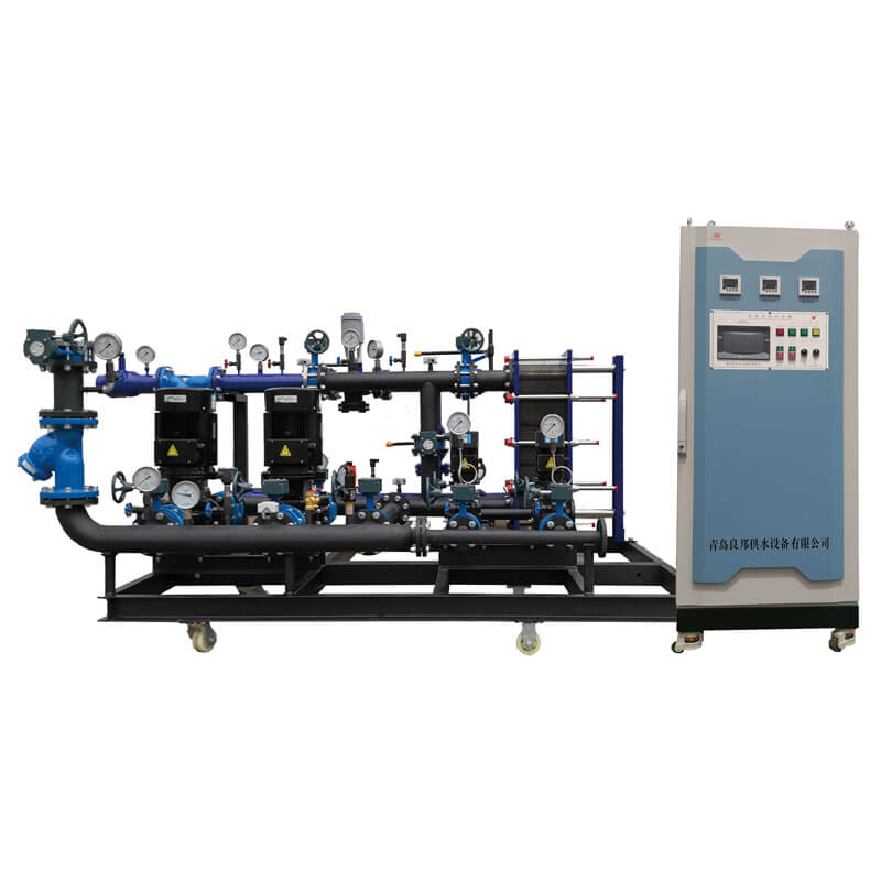 青島良邦板式換熱機組是根據(jù)工況需求、隨氣象條件的變化,由中心控制器實現(xiàn)對一二次熱網(wǎng)的智能控制,然后實現(xiàn)供熱量與實際熱負荷的平衡。它是集城鎮(zhèn)集中供熱(采曖、空調(diào)、生活用熱水)理想的熱交換設(shè)備。該機組是由板式換熱器,循環(huán)泵.補水泵,除污器,管道,閥門,儀表,變頻控制系統(tǒng)等組成。根據(jù)用戶需要可加配電子除垢儀和全自動編程系統(tǒng)。本機組具有傳熱效率高.阻力小,結(jié)構(gòu)緊湊,運行可靠,操作簡便直觀等優(yōu)點,是卓效節(jié)能產(chǎn)品。