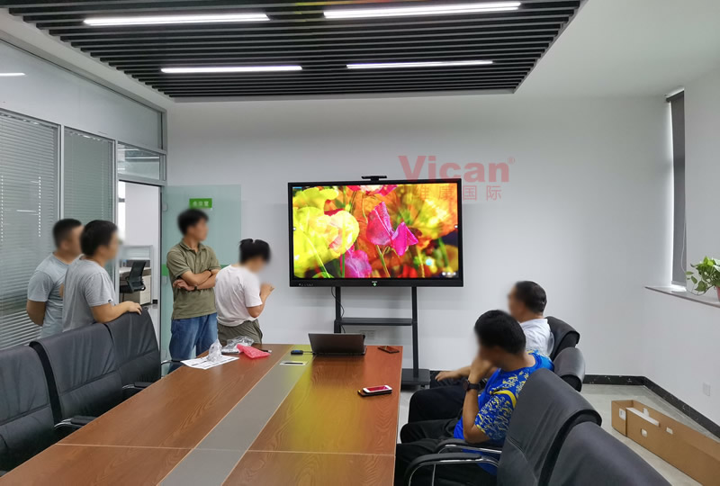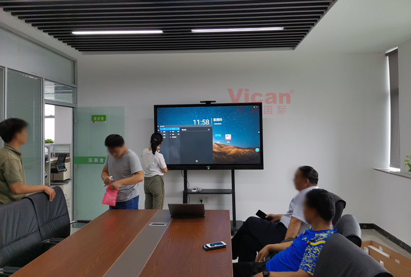 維康國際為深圳西濼辰食品公司的會議室提供了一臺75寸會議平板,采用雙系統(tǒng)模式,支持遠程視頻會議、無限傳屏與雙向投屏,并且精準觸控、手寫自如,采用移動小推車安裝,使用更高效、便捷。
