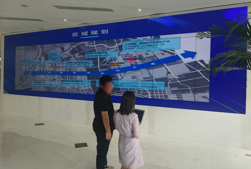 我公司為北京中關(guān)村壹號(hào)展廳提供的這套大屏,采用4行8列、55寸液晶拼接屏,雙邊拼縫為3.5mm,主要用來(lái)顯示大數(shù)據(jù)信息。大屏幕顯示高端大氣,安裝調(diào)試完后得到該用戶(hù)的一致好評(píng)。