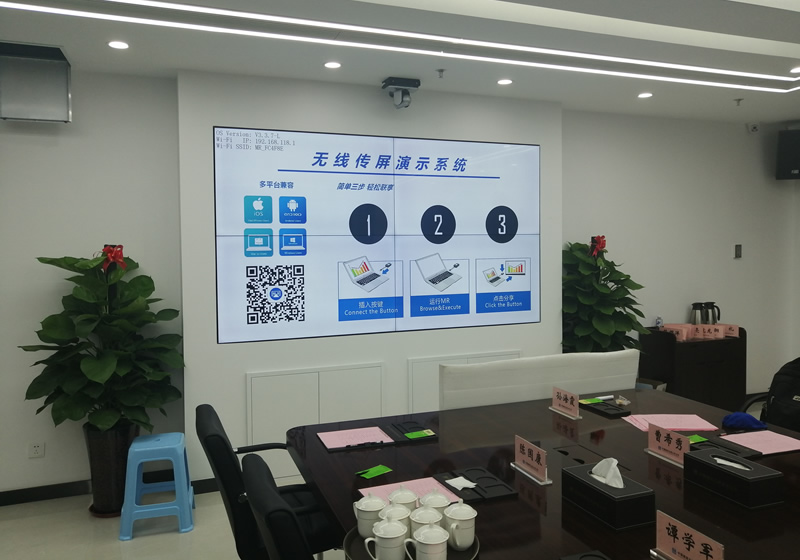 近日,維康國際為中鐵某局提供了一套會(huì)議大屏,采用2x2、55寸0.88mm液晶拼接屏,畫面清晰亮麗、超小拼縫設(shè)計(jì),有著很好的一體化顯示效果,如上圖所示,與墻面形成一體,美觀大氣。