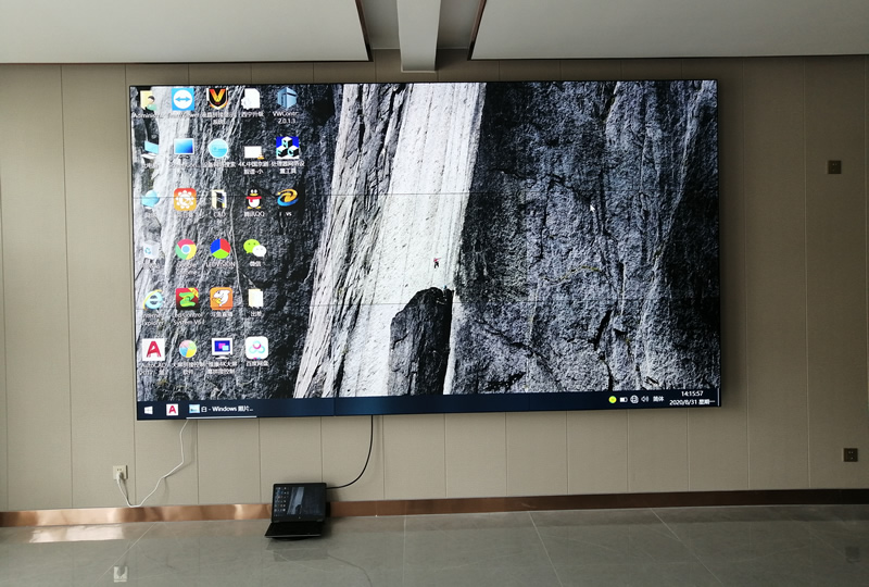 該案例中,維康國際為日照莒縣如意社區(qū)黨群服務(wù)中心提供一套會議大屏,采用3x3拼接、55寸0.88mm液晶拼接屏,超窄邊設(shè)計(jì),畫面顯示清晰亮麗,一體化顯示效果很好,如上圖所示。