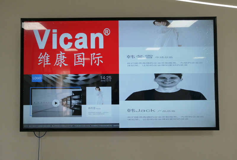 本案例中,維康國際山東大學(xué)長清校區(qū)提供了一套會議大屏,采用100寸會議一體機,大屏幕4K高清顯示,顯示尺寸為2158.848mm x 1214.352mm,采用壁掛式安裝,主要用來會議顯示使用。