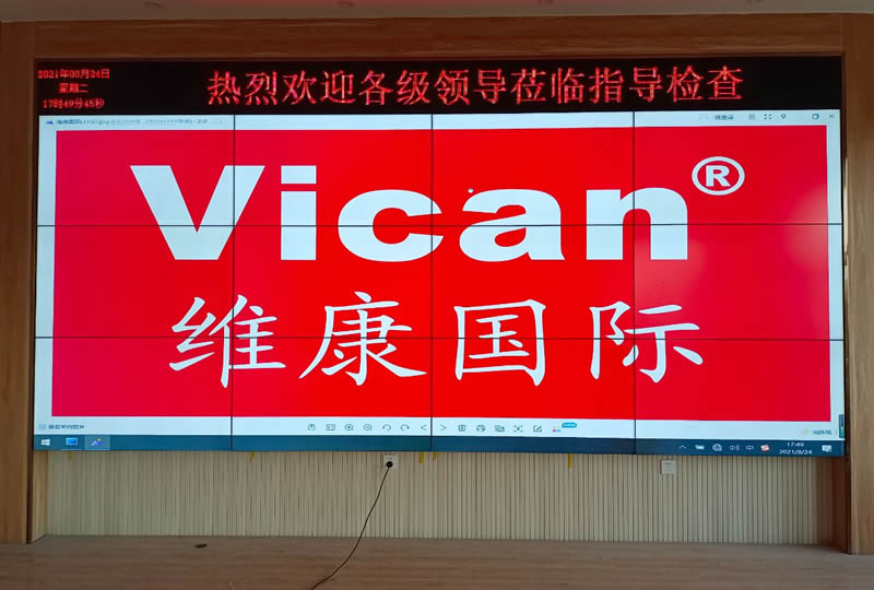 本案例中,維康國際為廣東清遠某中學提供一套高清會議大屏,采用3X4的55寸液晶拼接屏,拼縫為3.5mm,大屏幕美觀大氣、顯示效果好。