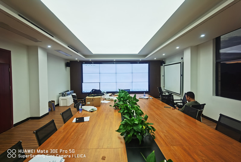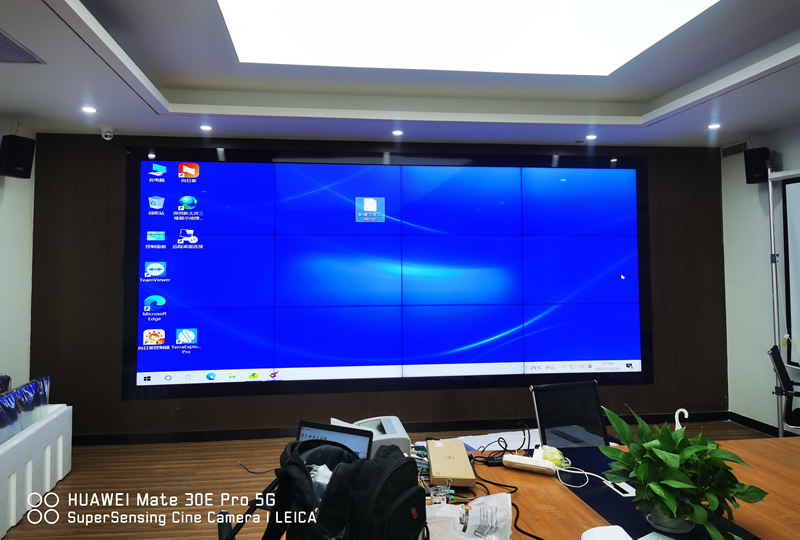 本案例中,維康國(guó)際為深圳市大鵬水利局提供了一套會(huì)議顯示大屏,由3x4、55寸液晶拼接屏組成,屏體為L(zhǎng)G1.8mm原裝面板,采用前維護(hù)式安裝。