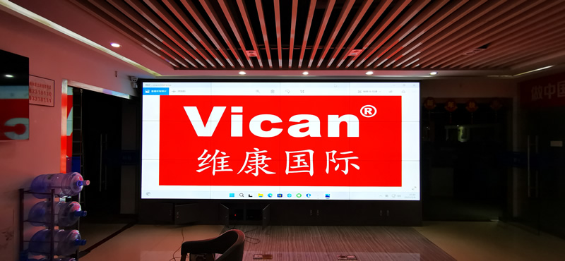 本案例中,維康國際為深圳市天音科技公司提供一套辦公室顯示大屏,采用3行4列、55寸拼接屏,屏體為0.88mm超窄邊液晶面板,如上圖所示,大屏幕畫面清晰,一體化顯示效果。