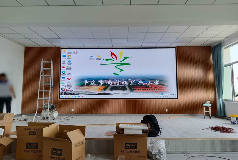 本案例中,維康國際為平度市蘭底小學提供一套會議室大屏,采用P2點間距的LED顯示屏,顯示面積約10平方米,大屏幕顯示清晰,視覺體驗效果好。