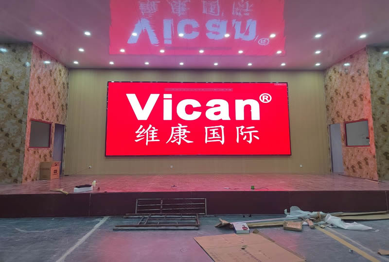 本案例中,維康國際為山東宏陽型材料公司提供一套會議廳LED大屏,采用全彩P2.5系列,大屏幕面積為8*3.2米,面積約25個平方,大屏顯示清晰,視覺體驗效果好。