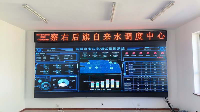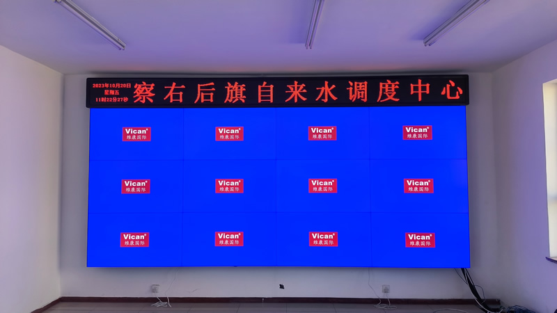 本案例中,維康國際為內(nèi)蒙古某自來水公司提供一套指揮調(diào)度中心大屏,由3x4拼接、55寸液晶拼接屏組成,采用0.88mm超窄邊LG面板,顯示清晰,色彩豐富,一體化顯示效果更好。