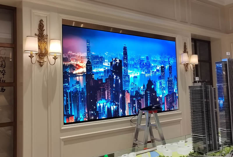 本案例中,維康國際東莞市萬科御景園營銷中心提供一套大屏,采用小間距LED顯示屏,大屏幕畫面清晰,色彩豐富,一體化顯示效果好。