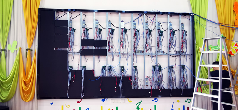 本案例中,維康國(guó)際為東莞市某幼兒園提供一套高清LED大屏,采用P1.86小間距LED系列,顯示面積約10平方米,大屏幕顯示清晰,一體化效果好。