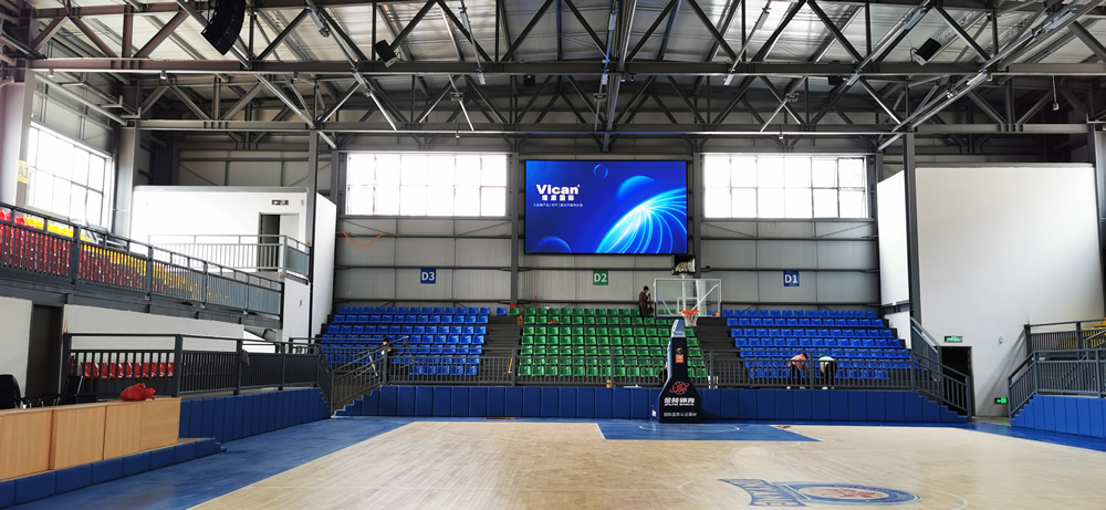 本案例中,維康國(guó)際為涼山金陽(yáng)某體育館提供3套高清LED顯示屏,如上圖所示,采用高清、高亮顯示屏幕。