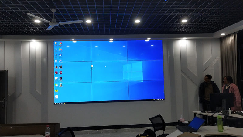 本案例中,這套顯示大屏是維康國際為福建南平市林職院提供的3行3列、55寸液晶拼接屏,雙邊拼縫為3.5mm,安裝在辦公室中,主要用來做辦公會議使用。