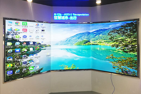 這樣的弧形顯示設(shè)計(jì),可以讓整體顯示區(qū)域的長(zhǎng)度顯得不那么長(zhǎng),有效的提高觀眾的視覺(jué)體驗(yàn)效果,而且顯示功能還可以保持完整,尤其在一些指揮中心、展廳等場(chǎng)合中比較常見(jiàn)。