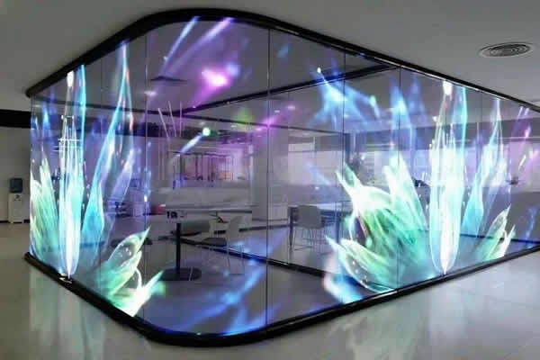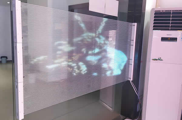 與LED透明屏完全不同,它是采用光學(xué)數(shù)字顯示技術(shù),對(duì)透明介質(zhì)材料進(jìn)行多層結(jié)構(gòu)調(diào)整,只會(huì)對(duì)激光光源方向的光進(jìn)行調(diào)控,對(duì)其他方向的光允許完全透過。從而實(shí)現(xiàn)全透明、高清晰的圖像顯示。當(dāng)然了,雖然透明顯示效果很好,但它的價(jià)格是比較貴的。