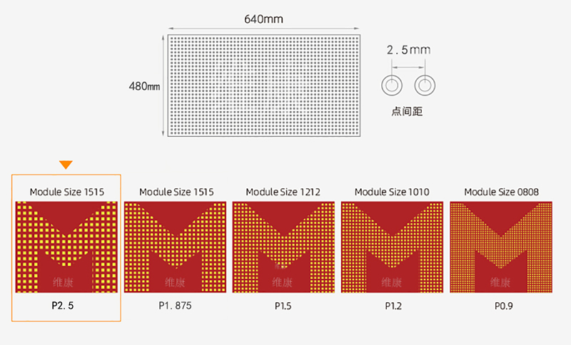 產(chǎn)品尺寸:P2.5LED顯示屏